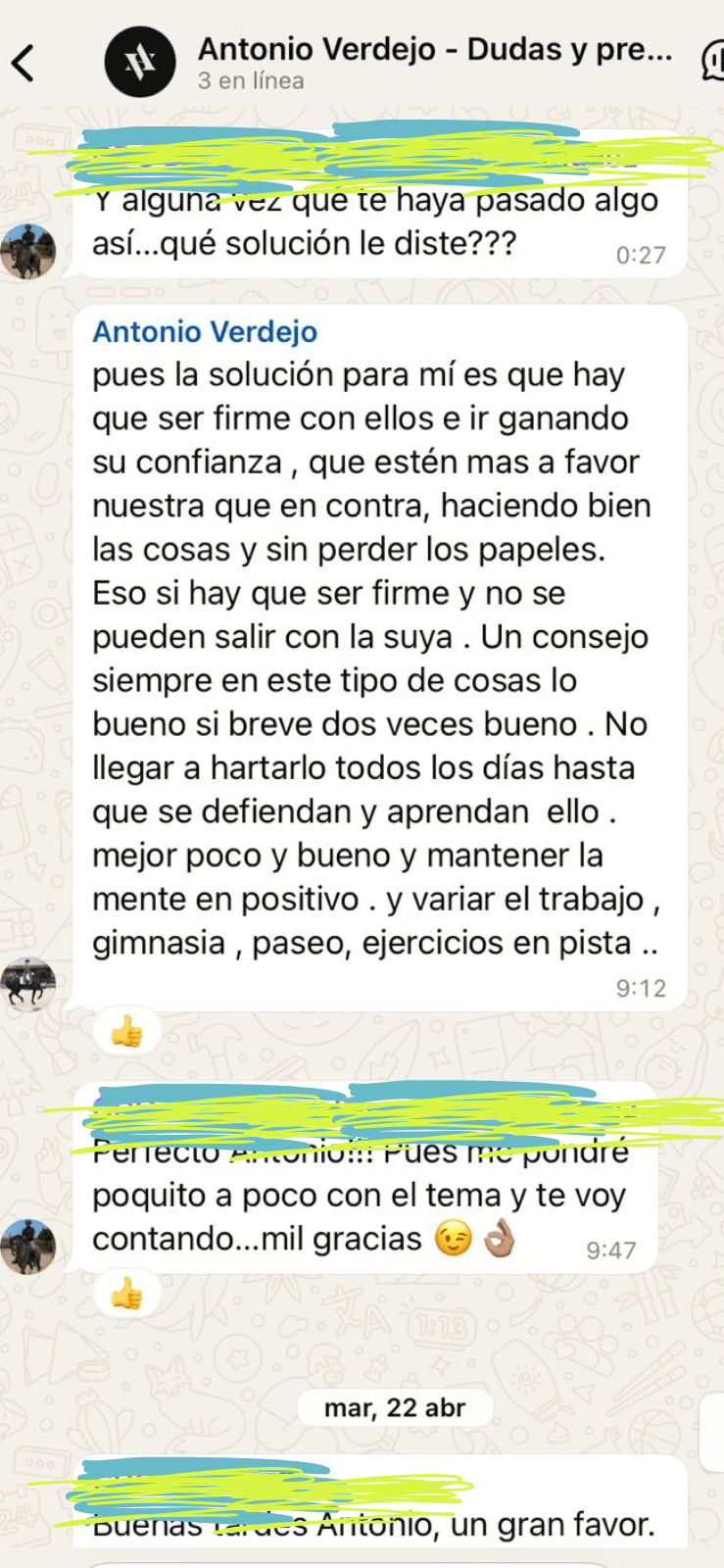 Desde el corazón y la experiencia personal, me lancé a compartir mis conocimientos como formador ayudando a compañeros, amigos y entusiastas de la doma a superar los obstáculos que enfrentaban día a día con sus caballos.